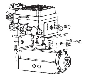 5,用六角螺栓和墊圈固定閥門定位器和支架。固定螺栓時(shí)請(qǐng)不要依次完全擰緊螺栓,而要把4個(gè)螺栓擰到一定程度后,確認(rèn)閥門定位器的正確位置后在擰緊4個(gè)螺栓。